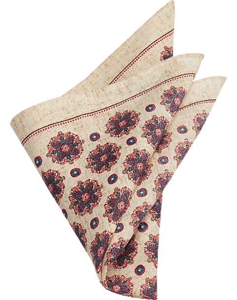 Joseph Abboud Linen Pocket Square, Beige & Blue Medallion