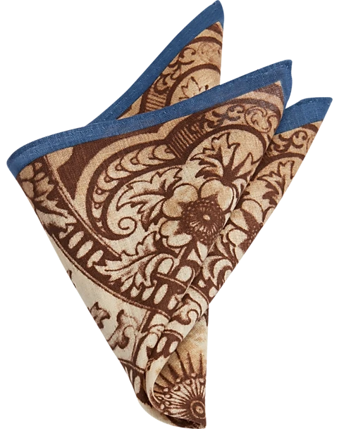 Joseph Abboud Linen Pocket Square, Taupe Floral Scroll
