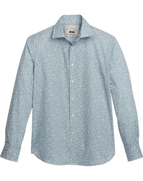 Joseph Abboud Modern Fit Sport Shirt, Teal Fossil Leaf