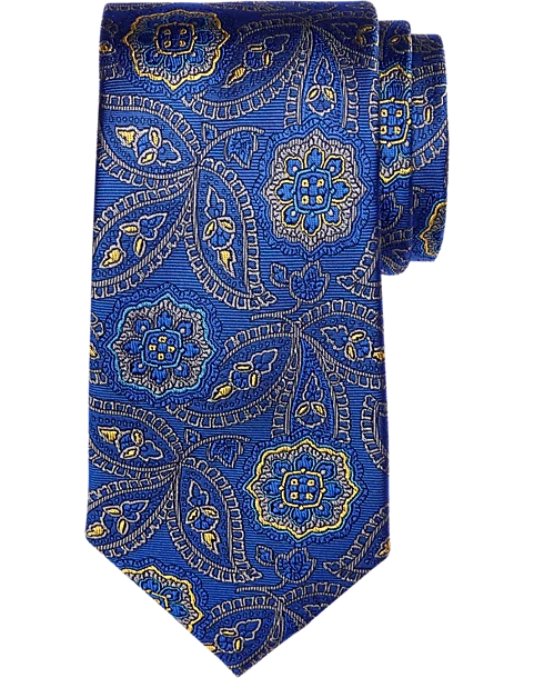 Joseph Abboud Narrow Silk Tie, Teal Paisley Medallion