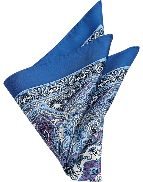Joseph Abboud Silk Pocket Square, Blue & Purple Paisley